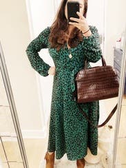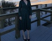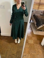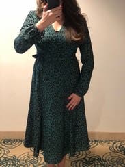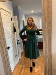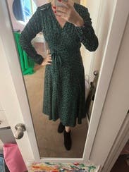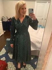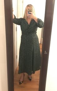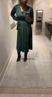 I didn’t expect to love this so much but I am obsessed. TONS of compliments. The guy at the lunch counter told me I looked “elegant”. I wore this to a work holiday party and again on Christmas Day. Perfect wrap dress and plenty of fabric on top to cover larger chests. I did use some double sided tape to avoid gaping. Love love it!