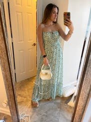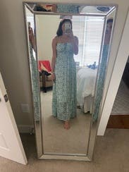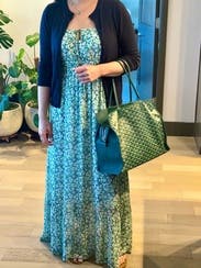 Wore this for a baby shower and it was perfect - flowy and comfortable for the June heat. Fits true to size, the only thing I didn't love was the keyhole opening in the front - my bra showed through. Could probably be fixed if I had worn a better strapless bra.