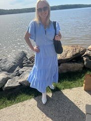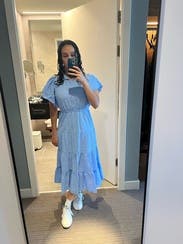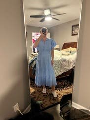 This dress is so feminine and girly! The light blue color is beautiful. It’s perfect for when you need a more conservative dress. Was lightweight and cool in the heat of Italy!