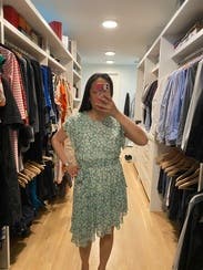 This dress has great colors and in theory could've been super cute! It's stretchy and I'm guessing if I'd gone down to a medium it may have fit better. The chest was just too big and didn't want to sit right no matter how I tried to wear it. Still cute, but not my favorite and likely wouldn't rent again.