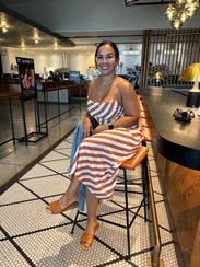 My fiancé and I went out to a cute low key rooftop spot in JC for a date night. I was dressed up enough to feel pretty but not over dressed. It has a double liner up top so I didn't need to wear a bra. I am 5'7" -170lbs - 36B - normally a size 8/10 and ordered a medium but only because the large wasn't available. It looked nice on me and was comfy but felt it was slightly snug at my hips. It was a fun rental but a large would have worked better.