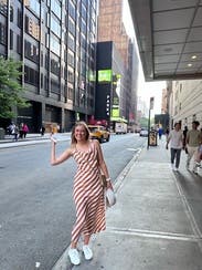 Wore this to a Longhorn football game followed by the food and wine festival so paired with sneakers for a long day. The color of orange was perfect! The dress was a hit (so many compliments!), comfortable and easy to wear. You could easily pair this dress with heels for a more dressed up look.