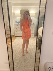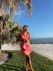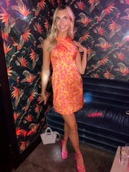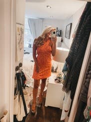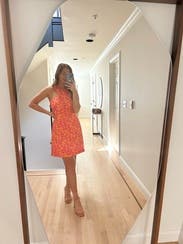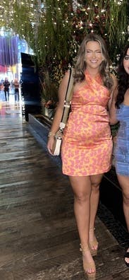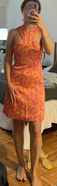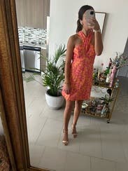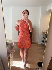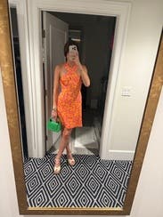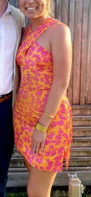 Love the color combo with pink and orange. It was a weird fit around the bust. Length of the dress wasn't too short