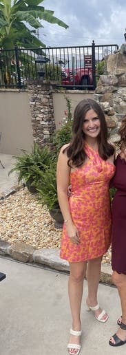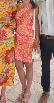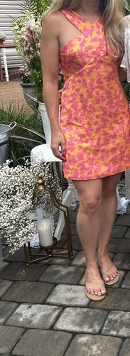 Wore this to an anniversary dinner date and it was the perfect dress. The colors were so bright and perfect for a summer night. It was a little short for me so sitting down was a bit of an issue. Overall stunning dress that I would rent again!