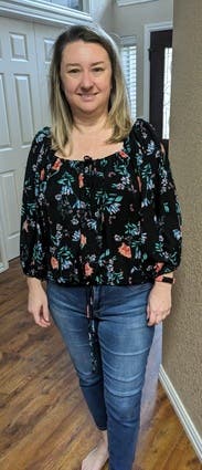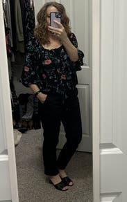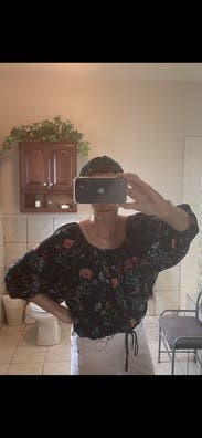 I like this top. The print is pretty, and the fit flowy. I wish the waist was not a tie style, and that it was longer. I will probably end up tucking it into my jeans because I'm not a fan of it out. I haven't worn the top yet, just tried on. But it's flattering and I like the sleeves. I also like that I can adjust the "exposure" by tying up the string on the neckline.