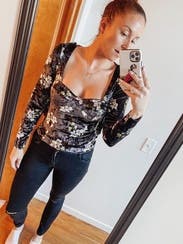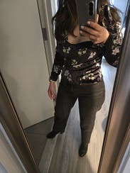 Wish I️ took a proper photo that shows this shirt fully but it's a beautiful, flirty, floral velvet with the perfect fit. Flattering and empowering while hugging curved in the perfect way