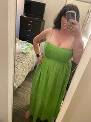 The green color made me feel so tan and the dress is so flattering!! A little tight in the bust area but not terrible!