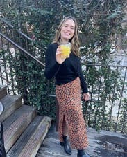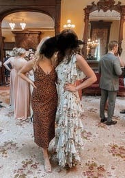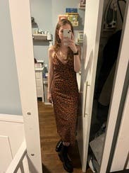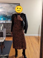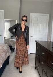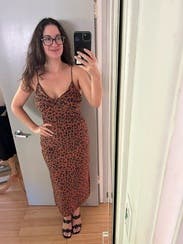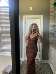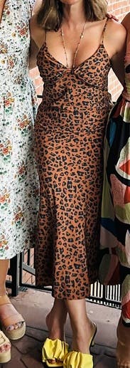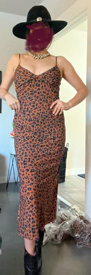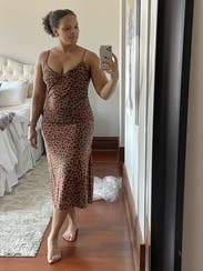 Everyone I was with told me to buy this dress! Loved the subtle animal print and the adjustable straps. Large leg slit was good for dancing!
