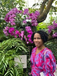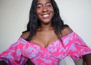 I wore it to the botanical gardens, colors are vivjd and looked great in photos, It's a fun top, waist cinched. I would recommend wearing high rise pants if you have a little tummy pooch like me, the top rides up. I used a safety pin for the neck.