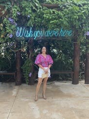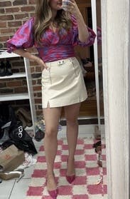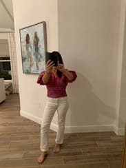 I’m long waisted so it was a little short on me but this top just puts you in a happy mood! So fun and colorful. Wore with a black linen skirt and with high rise jeans in Mexico vacay