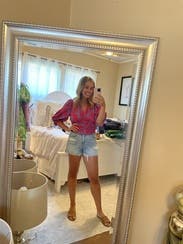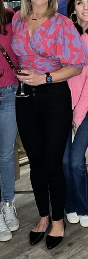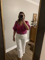 Went well with my 7 jeans. Love this top. It’s a different fit, but I like that! Got compliments on this one.
