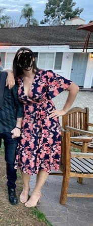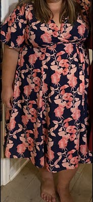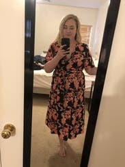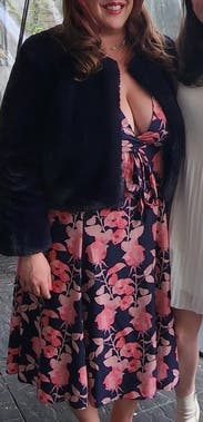 I loved this dress, I usually struggle with wrap dresses not fitting properly. The top didn't shift much even being small chested and the dress was super comfortable.