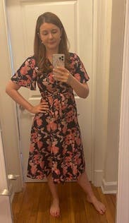 Rented the XS and planned to wear to a baptism. The top did not close enough for me and I felt too exposed which may just be the nature of a wrap dress. Really nice fabric and print but I was not comfortable.
