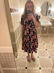 Floaty and lovely for a friend’s spring baby shower and a dinner out, but the top kept unintentionally showing off my bra in the front (I am a large cup size); I should have taped or pinned it.