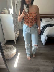 Paired with high waisted jeans for a night out in Nashville. Was fun to wear the tie in the back was easy to make it adjustable.