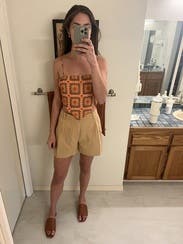 The straps are adjustable and it's a tie back, so it's really flattering on a lot of body types. I think this style is a trend so I'm happy to rent it but I'd buy it if I felt like scarf tops were going to be a staple for longer. I wore it several times!