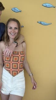 I wish I would have read more reviews and realized this was just a crochet print not actual crochet. I probably should have gone with a small, had to tie last tight as possible and had such a long tail in the back. It’s okay but wouldn’t rent again.