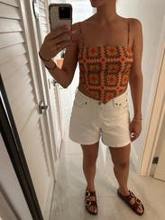 really cute summer top! it’s completely sizable to you because it ties in the back (and it didn’t slip at all for me, but i am smaller chested). it was really cute with jean shorts!