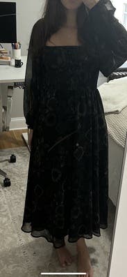 I have never received more compliments on any RTR piece than I did when wearing this Slate & Willow dress. It fits true to size, though I would note the bust area is rather small (I’m a 34D, for reference). The dress’ hem hits at my lower calf; anyone shorter than 5’5” may struggle with the dress’ length. Loved the look, overall. Would rent this dress again.