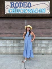 I wore this to the rodeo with my kids. You definitely cannot wear a bra, it’s backless. I was able to tie it tight enough that I felt comfortable without a bra. I did feel like the very top of the dress was too narrow.