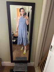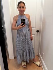 I really liked how flowy this dress was and it was easy to style. My only complaints are that the straps are a bit confusing to figure out and the top portion of the dress was a little long for me so the proportions didn’t feel quite right for me. Length overall was good despite that. This is also not a bra friendly dress but worked for me without a bra