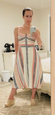 Love the color palette on this dress. Was comfortable and felt pretty! Wore it for Mother’s Day. But I think the top was made for a longer torso as the shoulder straps kept falling off.