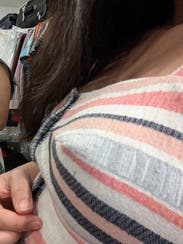 Very cute and comfortable and has pockets! I wore without bra. Fabric is substantial. Pair with jean jacket if chilly. Thumbs up!
