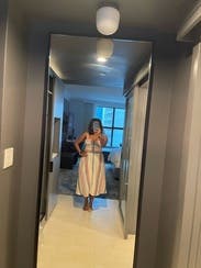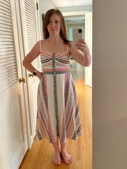 I loved this dress. Comfortable and breezy. Perfect for spring and summer. The only complaint is the straps are a little long and they kept slipping but the neckline is cute and the detail in the back is fun. The pockets were my favorite part of this dress.