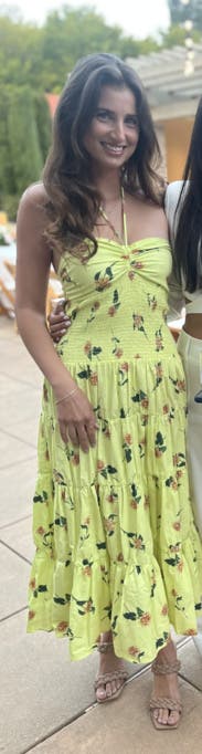 I wore this dress multiple times traveling, for a welcome party wedding weekend, around town, you name it! So versatile, dress it up or down, I love the details of the neck / halter string tie with the scrunching around the waist and the pleated skirt / floor length. SO Bright and summery, get this dress!!