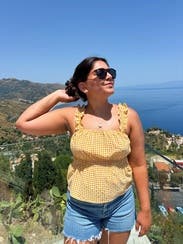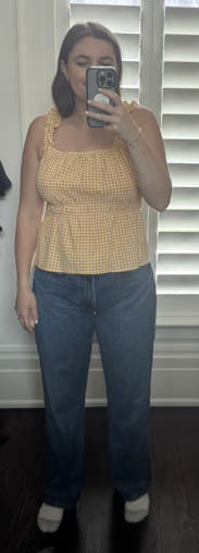 Not super flattering but a really cute summer top to throw on with jean shorts. Love the yellow color and fit perfect.
