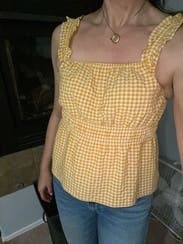 I love Gingham so I am always a sucker for this fabric. The straps were a little long so I did pin them but this is so cute with a denim skirt, shorts or jeans. Wore like 4 times. Different people of course. Haha