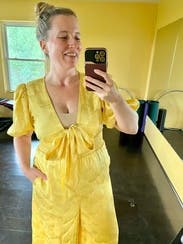 Wore to a garden party and rec'ed so many compliments. The yellow is vibrant and the fabric flowy. The top was a little loose on my A cup chest, but I loved it so much and wore anyway.