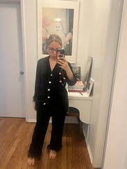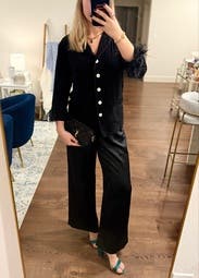 Wore to a birthday dinner with the girls. Super cute, but definitely needed to size up on the pants