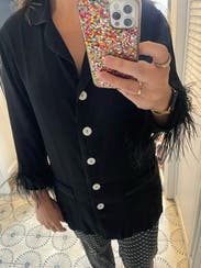 I've always loved the look of these Sleeper pajamas and was happy to see they were available for rental for my trip to Europe. However, both this top and the matching pajama bottoms left feathers EVERYWHERE. Cute, but I'm not sure if I would rent again.