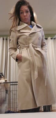 Loved this coat. Color was perfect, sweater collar made it feel a little unique and luxe. The fact that it wasn’t really lined made it drape well and give some shape. It was also great to fit over little jackets for work. The only downside was the material didn’t look very durable and seemed like it would only last a season or maybe two before it started to pill and look too worn to wear.