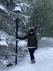 I wore this coat skiing- it’s not a ski coat so it didn’t have quite as many pockets as I would have liked but it kept me warm on and off the slopes. The pockets have fleece so between that and the thumb holes I didn’t really need gloves for moderately cold days when I was walking around town.