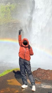 I rented this for a quick weekend getaway but ended up keeping it for a very rainy and fluctuating temperature (30s to 70s) Spring season in my hometown instead. It’s very functional. I appreciated the long sleeves with the thumb holes to keep my hands warm. It worked well as a great raincoat with the easy dry material. There is zero peripheral vision when the hood is up but that made for it being a great wind repellant. The color is totally not my style but I literally got compliments every where I went. My kindergartener called me out on how noisy it is every time I walked next to him 😅 I solved that by walking with my hands in my pocket for his sake lol. I probably could have gotten away with a L; the XL was roomie at my size but worked well when I wore multiple layers or thick sweaters. I would recommend it.
