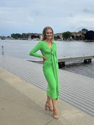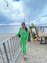 Absolutely loved this stunning green dress. It was extremely comfortable and perfect for a September wedding in Lake Tahoe. The tie in the front is somewhat adjustable so you can make it more or less revealing based on your preference. I got compliments on this all night!