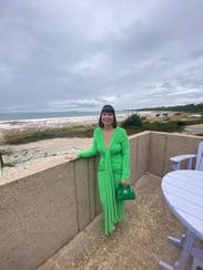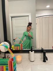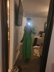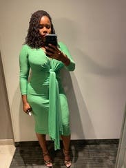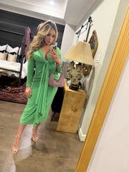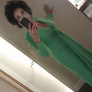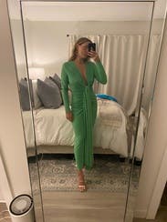 I gave it 5 stars because I received so many compliments. Like tons of compliments. However, things to know: material is thin on the back side. Shapewear was a must for me. My cellulite was visible so spanx was not optional. There was also unthreading of the material at the wrist. I had to fold them under. It’s also not as vibrant green. Slightly lime-ish. Just slightly. But for some reason it really looked good on my body type. Otherwise it could have been 4 star.