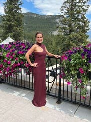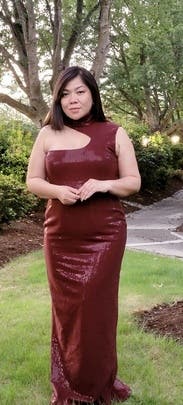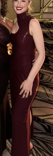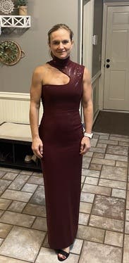 Wore this for the Leap Nationals gala and felt like That Girl. I’m 5’9”, 132 lbs, and the 8 Long fit perfectly—snatched without strangling me, and I could sit comfortably (a miracle for formal wear). The color is stunning and the dress moved beautifully when I walked, giving low-key red carpet energy. I wore it from 2 p.m. to 9 p.m. with no issues, and it photographs like a dream. Highly recommend if you want to feel elegant but still be able to breathe, eat, and dance all night.