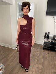 I didn’t end up wearing this dress, but I still think about it and I love the glamorous fit of the dress that lipstick red shiny and the unique neckline is so flattering. I would rent this again. I am usually a size 6 or eight and needed a size up. The neck line can be a little tight for those that don’t care for a turtleneck so beware of that otherwise it is beautiful.