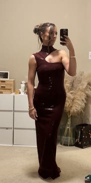 I wore this to a gala and got lots of compliments. It fit like a glove and made me feel sexy. The sequence on it made me feel so glitzy.