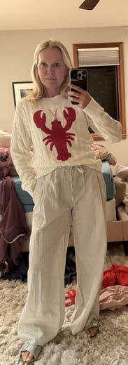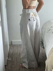 I love the subtle pinstripe pattern on these pants and the embroidery on the back pocket is absolutely adorable. The fabric feels high quality. Unfortunately, the fit didn’t work for me. These pants ran very large, and I had to roll the waistband just to be able to wear this out.