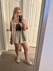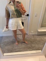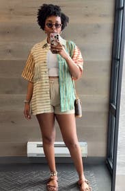 This summer has been all about the linen sets and this one might be the best I've worn. So comfy, but stylish. All the compliments. There are reviews about it being way way oversized, but I found it true to the model's styling. Loved it.