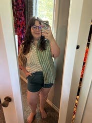 I wore this with the matching shorts that were also great. My husband said it was “super cute” but also that it gave off “demented supervillain vibes” that still worked. hahaha The material is a bit stiffer than I expected, but still very comfortable. I wasn’t sure on sizing since I’ve been gaining weight, but the 3 was too big. I ordered it again in a 2 and that should be perfect.