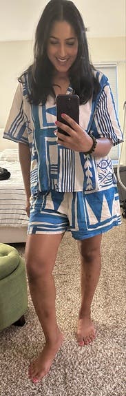 A fun set for a beach vacation! A bit oversized -- I tied the top at my waist.