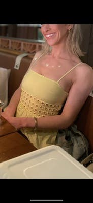 It’s a tad see through so keep that in mind, but you won’t regret borrowing it for the month! Such a fun summer piece. The medium was too big for me, but the small wasn’t available.