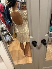 Super cute printed dress, lightweight material, the back is stunning but arms run a bit tight for a Small