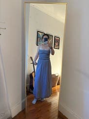 Received so many compliments and I honestly should have just purchased it. Just a heads up that the back is very open but the straps are very stretchy. I went with my true size but could have sized up so the top wasn’t as fitted. Also it reads like a navy gingham but it is definitely black and white.