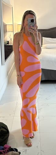 I wore this to a dinner while on vacation with girlfriends in Palm Springs. It fit me well in all the right places, and the pattern was perfect for the PS vibe. The knit was a little hot for a summer evening in the desert, but the fit trumped that for me. Felt so pretty!